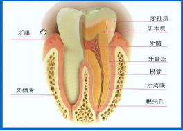 (3)牙(ya)骨質:包繞牙(ya)根的(de)外層,極薄,它的(de)硬(ying)度和(he)骨組織(zhi)相似。牙(ya)骨質含無機物約45%-50%,有(you)機物和(he)水約50%-55%,有(you)一定的(de)修復與補償(chang)功能。