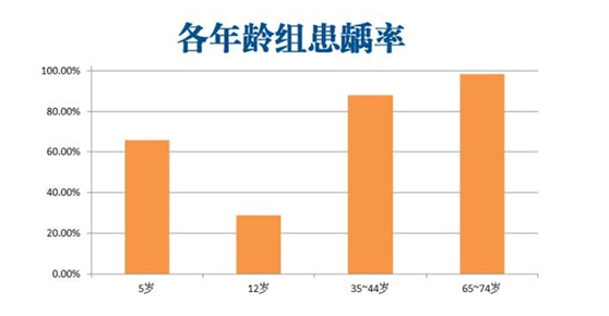 齲(qu)(qu)(qu)(qu)病(bing)(bing)是人(ren)類(lei)最常見的(de)口腔疾病(bing)(bing),齲(qu)(qu)(qu)(qu)病(bing)(bing)及(ji)其繼發(fa)疾病(bing)(bing)給人(ren)們(men)造(zao)成很大的(de)危害(hai),被世界衛生組織(WHO)列為(wei)(wei)人(ren)類(lei)重點(dian)防(fang)治的(de)疾病(bing)(bing)之一。2005年(nian)(nian)第三次全國口腔健(jian)康流(liu)(liu)行(xing)(xing)病(bing)(bing)學抽樣調查顯示,我國5歲(sui)兒(er)童(tong)乳牙齲(qu)(qu)(qu)(qu)病(bing)(bing)的(de)患病(bing)(bing)率(lv)(lv)為(wei)(wei)66%,12歲(sui)兒(er)童(tong)恒(heng)牙齲(qu)(qu)(qu)(qu)病(bing)(bing)的(de)患齲(qu)(qu)(qu)(qu)率(lv)(lv)為(wei)(wei)28.9%,35-44歲(sui)中年(nian)(nian)人(ren)齲(qu)(qu)(qu)(qu)病(bing)(bing)患病(bing)(bing)率(lv)(lv)為(wei)(wei)88.1%,65-74歲(sui)老年(nian)(nian)人(ren)齲(qu)(qu)(qu)(qu)病(bing)(bing)患病(bing)(bing)率(lv)(lv)為(wei)(wei)98.4%。各年(nian)(nian)齡段齲(qu)(qu)(qu)(qu)均依次為(wei)(wei):3.5、0.54、4.51、14.65。按WHO規定的(de)齲(qu)(qu)(qu)(qu)病(bing)(bing)患病(bing)(bing)水(shui)平的(de)衡量標準,我國青少年(nian)(nian)患齲(qu)(qu)(qu)(qu)情況尚屬極低水(shui)平。齲(qu)(qu)(qu)(qu)病(bing)(bing)發(fa)生具有一定的(de)年(nian)(nian)齡特征,隨著年(nian)(nian)齡增大,齲(qu)(qu)(qu)(qu)病(bing)(bing)發(fa)病(bing)(bing)率(lv)(lv)增加。大多數齲(qu)(qu)(qu)(qu)病(bing)(bing)流(liu)(liu)行(xing)(xing)病(bing)(bing)學調查結果顯示,一般(ban)女性(xing)的(de)患齲(qu)(qu)(qu)(qu)率(lv)(lv)高于男性(xing)。