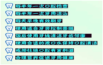 (3)三級預防(fang)旨在(zai)用各種(zhong)藥物和(he)牙周手術方法最大限度地治愈牙周組(zu)織(zhi)病(bing)損,防(fang)止功能障(zhang)礙(ai),以義齒(chi)修復失牙,重建功能,并通過隨訪(fang)、精神療法和(he)口腔(qiang)健康的維護,維持其療效,預防(fang)復發。同時(shi),還(huan)應治療相關(guan)的全身(shen)性疾病(bing),如糖(tang)尿病(bing)、血液病(bing)、營(ying)養缺乏癥,增強牙周組(zu)織(zhi)的抵抗力。